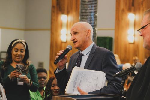Judges presiding at the ceremony included Chief Judge Leah Case and Judges Kathleen McNeilly, Linda Gaustad, Rose Marie Karadsheh Preddy, and Christopher A. France of the 7th Judicial Circuit. The event also featured opening remarks by CPC Chief of Quality Management & Permanency Brittany Lawton, a proclamation read by CPC CEO Karin Flositz, and an official welcome by Chief Judge Leah Case.