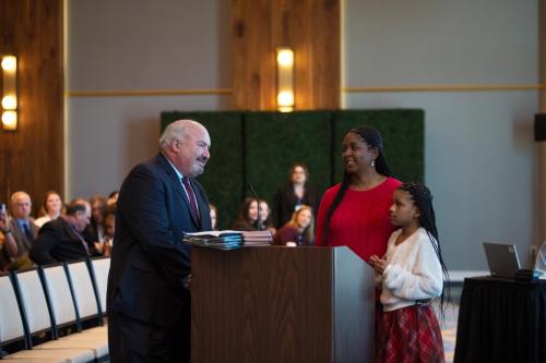 Hosted by Community Partnership for Children (CPC) at the Hard Rock Hotel, the event included the adoption finalization proceedings for 13 children who joined 8 families. Judges Christopher France, Joan Anthony and Robert W. Pickens, III of the 7th Judicial Circuit presided.